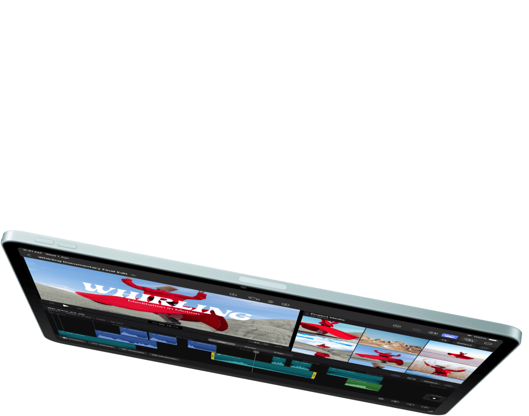 iPad Air in landscape orientation, showcasing video editing in Final Cut Pro