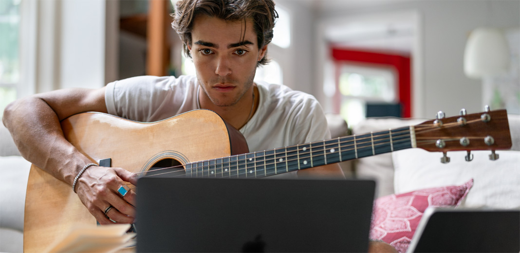 An aspiring singer and songwriter, Max uses pro apps like Logic Pro to make studio-quality music. Find out how he’s adapted to remote learning with MacBook Pro.