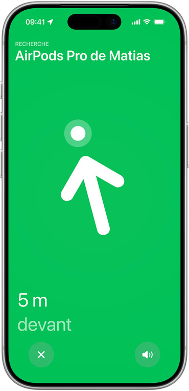 Repérez l’endroit précis où vous avez laissé vos AirPods Pro. La techno­logie Ultra Wideband nouvelle géné­ration du Boîtier de charge étend de 1,5x la portée de Localisation précise9. Et avec le haut-parleur intégré au boîtier, vous pourrez re­trouver vos AirPods, même s’ils sont tout au fond du canapé.