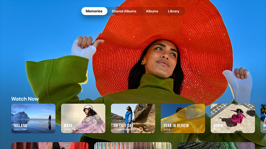 Photos. iCloud Shared Photo Library makes it easier than ever for the whole family to enjoy each other’s photos, and you can see them all right on your TV. And now you can choose Memories as your screen saver, and watch your special moments come alive on the big screen.