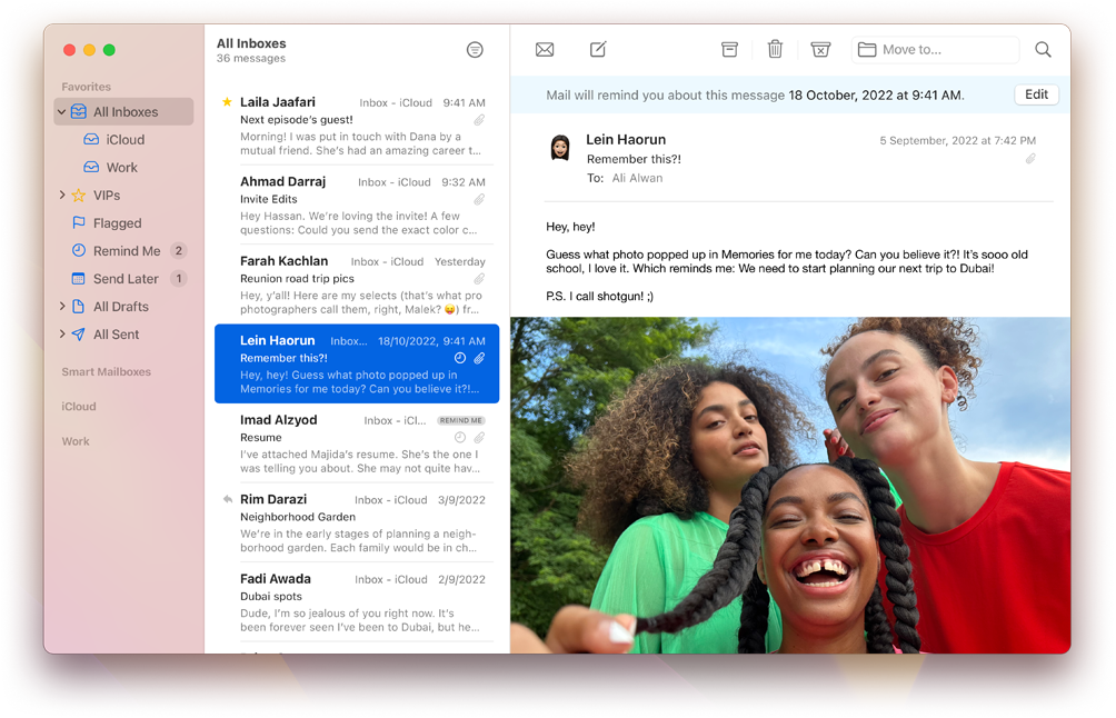 iCloud Mail is seamlessly integrated with the Mail app on your iPhone, iPad, or Mac, and iCloud.com makes it easy to send and receive email from anywhere. Security features like spam protection and antiphishing are built in to detect and block junk mail before it reaches your inbox. It’s simple to set up your own @icloud.com email address, and when you subscribe to iCloud+, you’ll be able to personalize your email with a custom domain.