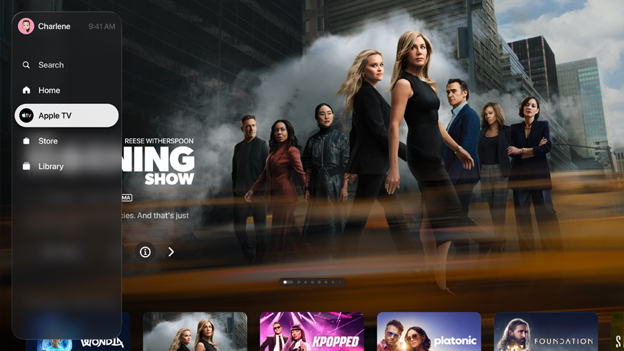 Apple TV 4k control center UI on a flat screen television