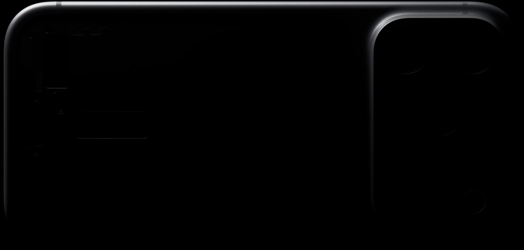 „iPhone 17 Pro“, galinės pusės dalis, išlietas vientisas aliuminio korpusas „iPhone 17 Pro“, galinė pusė, vientisas išlieto aliuminio korpusas
