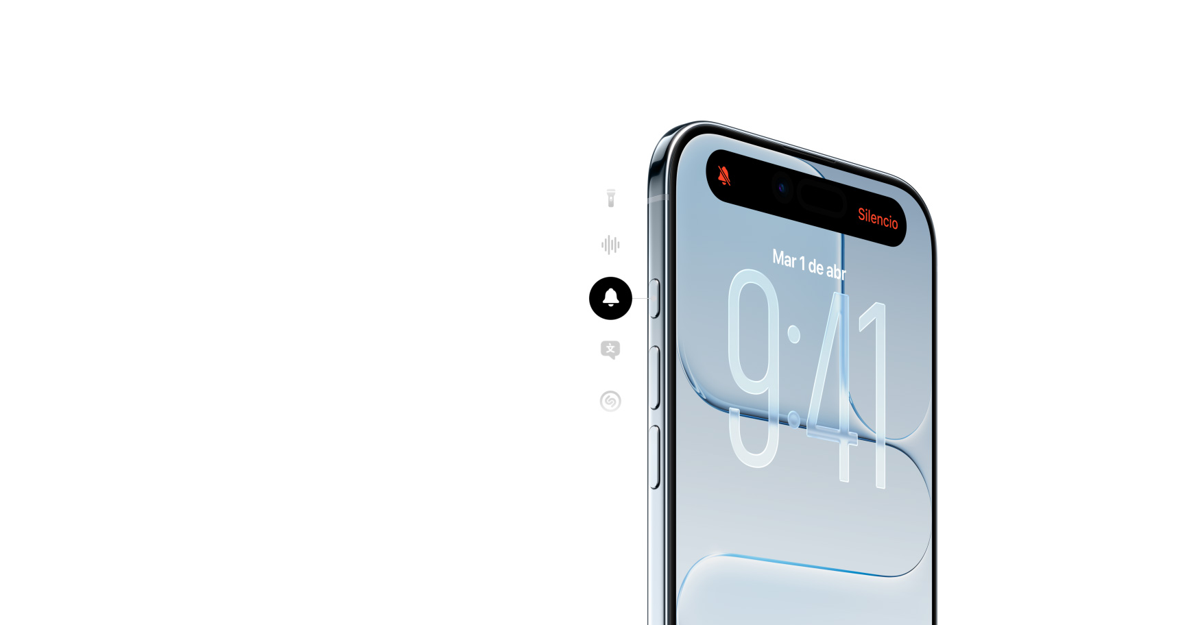 Botón de Acción. Un atajo personalizable a tu funcionalidad favorita. Mantenlo presionado para realizar diferentes acciones, como poner el dispositivo en silencio o traducir (sólo disponible en algunos idiomas).