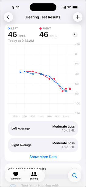 Private, secure, and easy to manage. All your Hearing Test data is privately and securely stored in the Health app on your device. You can retake the test whenever you want, monitor your hearing over time, download your test results, and read helpful articles about hearing health.