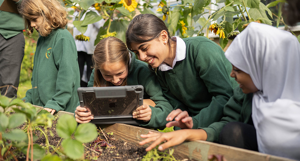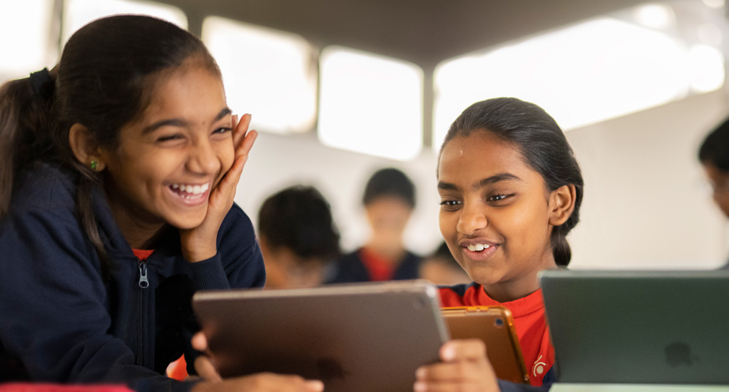 Obecnie uczniowie z zapałem projektują tkaniny w apce Tayasui Sketches School. Śledzą fascynujący cykl życia roślin w szkolnym ogrodzie za pomocą aplikacji Aparat i Clips. A emocje odkrywają dzięki tworzeniu własnej muzyki w GarageBand.