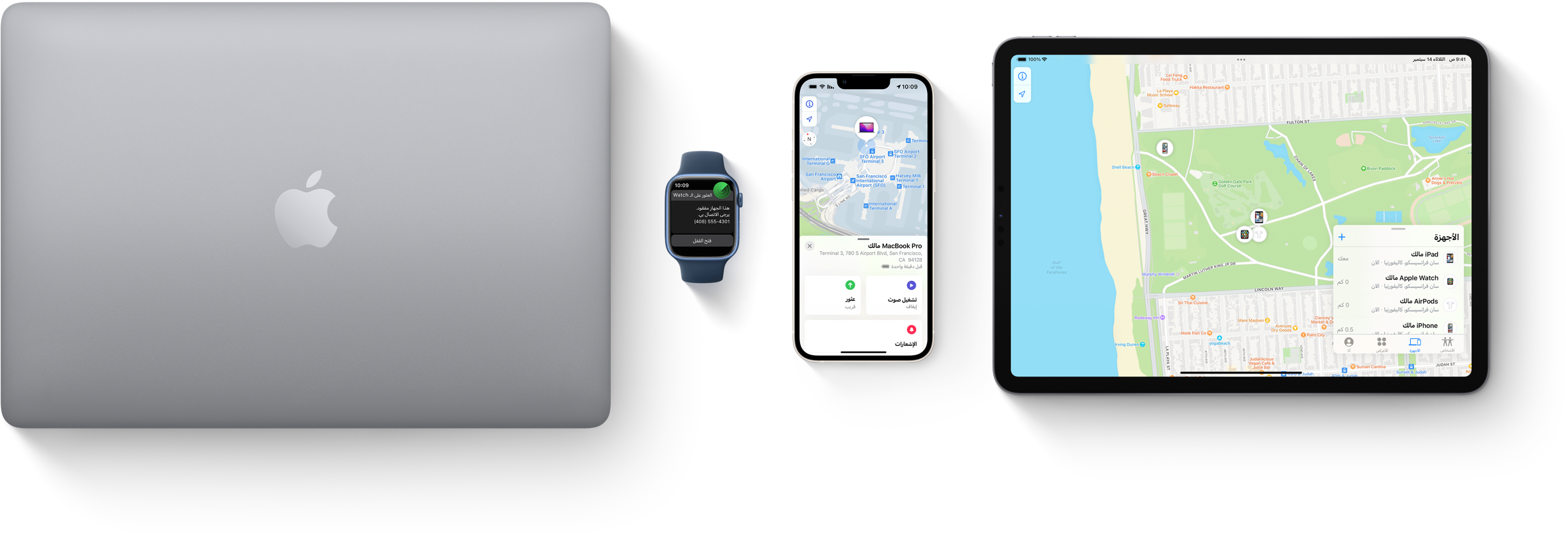 يجمع تطبيق تحديد الموقع بين تطبيقي عثور على iPhone وأين أصدقائي في تطبيق واحد سهل الاستخدام على أجهزة Mac وiPad وiPhone.‏ يساعدك تطبيق تحديد الموقع على تحديد موقع أي جهاز iPhone أو Mac أو iPad أو AirTag أو AirPods أو Apple Watch مفقود من أحد أفراد العائلة، وإن كان الجهاز المفقود غير متصل بالإنترنت أو في وضع الإسبات.