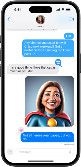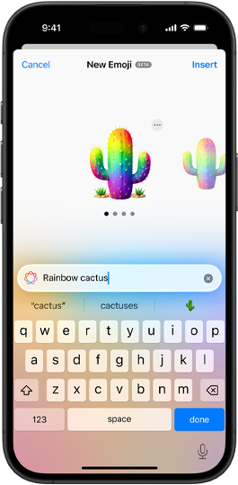 Skapa roliga originalbilder med Image Playground direkt i dina appar. Experimentera med bildstilar som animation, illustration och skiss och utforska fler ChatGPT-stilar. Få ännu mer kontroll när du skapar bilder inspirerade av familj och vänner med Genmoji.