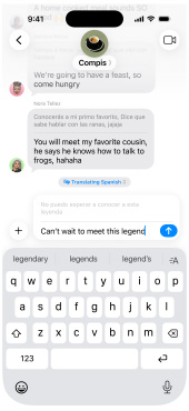 Aktivera Liveöversättning för att automatiskt översätta texter i Meddelanden,1 visa liveöversatt textning i FaceTime och få upplästa översättningar i appen Telefon.2