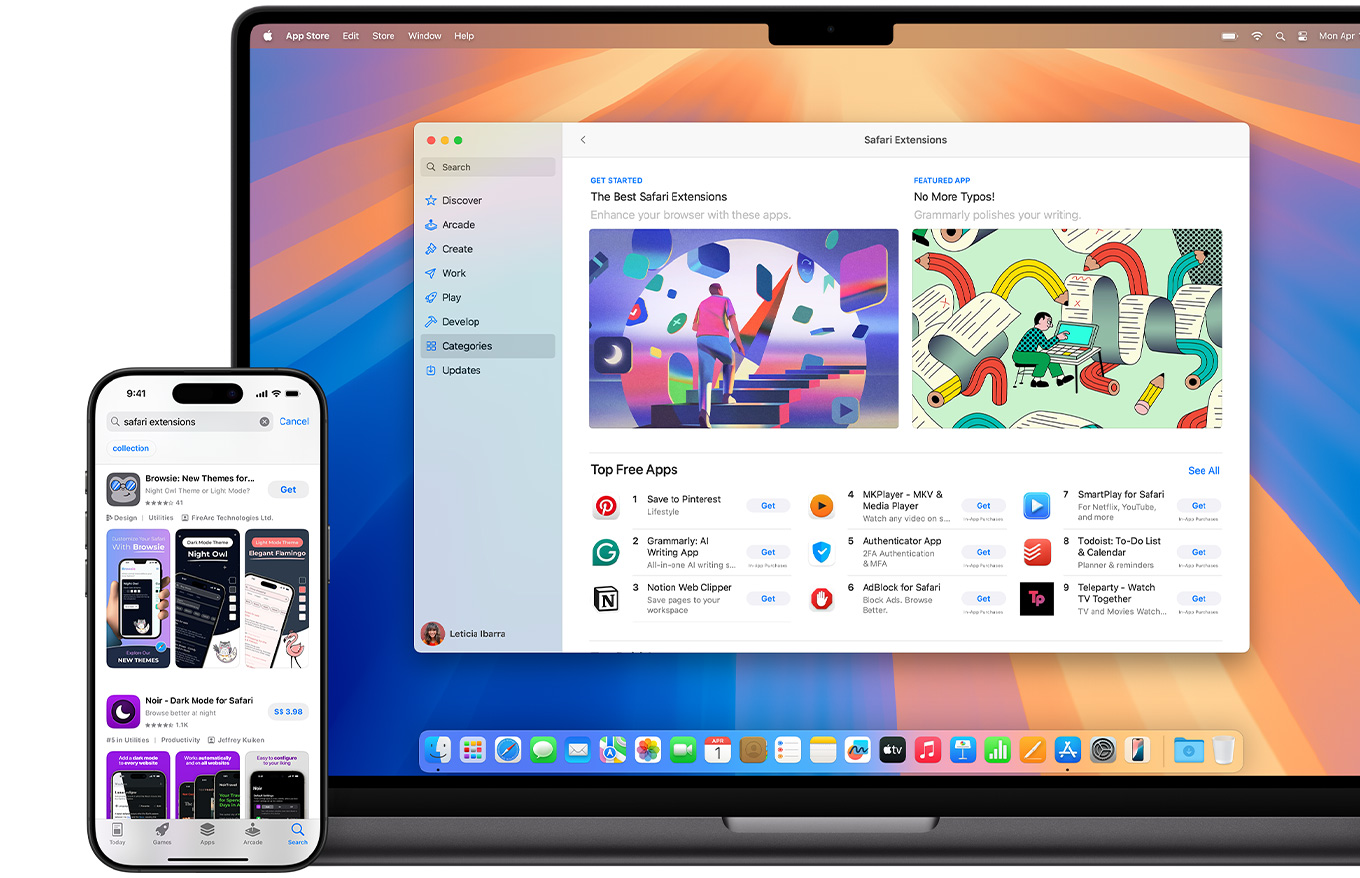 Safari is more customisable than ever. Organise your tabs into Tab Groups so it’s easy to go from one interest to the next. Set a custom background image and fine‑tune your browser window with your favourite features — like Reading List, Favourites, iCloud Tabs and Siri Suggestions. And third-party extensions for iPhone, iPad and Mac let you do even more with Safari, so you can browse the way you want across all your devices.