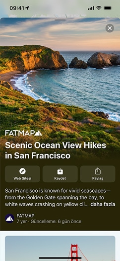 • Özel Düzenlenmiş Rehberler, yemek yemek, alışveriş yapmak, arkadaşlarla buluşmak veya sadece keşfetmek için harika yerler bulmanıza yardımcı olmak amacıyla güvenilir iş ortakları tarafından hazırlanan yer listeleridir. Harita’da dünya çapında birçok şehir için 1000’den fazla özel düzenlenmiş rehber sunulmaktadır. iOS 15’te Harita’yı açıp Rehberleri Keşfet’e dokunarak Harita editörlerinin tavsiye ettiği Rehberler'i inceleyebilirsiniz.
