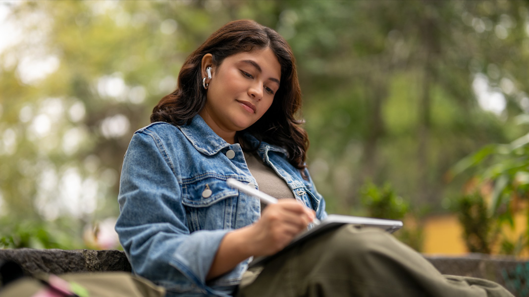 Michelle 不斷提升自己的技能,突破想像力的極限,開發過程中的每個階段,都在 Apple 裝置間順暢操作。她會先以鉛筆和紙張畫出角色的草圖,接著使用 Apple Pencil 在 iPad 上以 Adobe Illustrator 完成潤飾。然後透過在 iPad 上用 Freeform 規劃使用者旅程,並在 Mac 上用 Xcode 進行程式設計,讓角色栩栩如生。