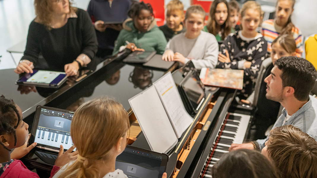 教師將這些新穎的學習方式引進課堂後,學生們的表現也令人刮目相看。在音樂課,學生們會聚在鋼琴邊彈奏,並用 Apple Pencil 和 Pages 來創作自己的樂曲。另一些人則會用 GarageBand 和彈奏樂器的同學一同創作和錄製音效。上程式碼編寫課時,學生們會用 iPad 上的 CoSpaces Edu 來進行 3D 創作,並使用 Swift Playground 製作適合擴增實境 (AR) 和虛擬實境 (VR) 環境的動畫。