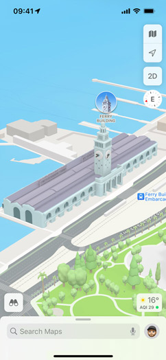 Explore San Francisco, Los Angeles, New York and London — with more cities coming soon — in unprecedented detail for elevation, neighbourhoods, buildings, trees, and road features like crossings and turning lanes. Visit amazing 3D landmarks like the Golden Gate Bridge in both the day and dark mode maps.