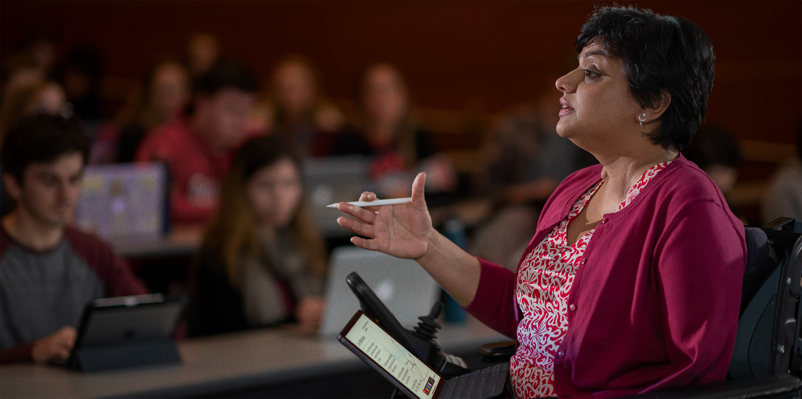 Công nghệ của Apple biến giảng đường của cô thành một bể ý tưởng năng động. Với các tính năng trợ năng tích hợp sẵn, như Đọc Chính Tả và AssistiveTouch, iPad Pro cho phép Tiến sĩ Gopalakrishnan tương tác và minh họa nội dung trong thời gian thực. Bên cạnh đó, Apple Pencil cung cấp cho cô một công cụ tương tác kết hợp cả phác thảo, vẽ và đánh dấu nội dung.